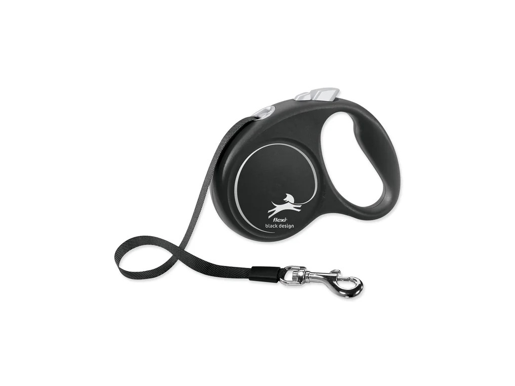 Vodítko Flexi Black Design páska S čierne 5m je ideálne samonavíjacie vodítko pre malé psy do 20 kg. S brzdným systémom pre kontrolu a chrómovanou karabínou ponúka voľnosť pohybu a pohodlné ovládanie.